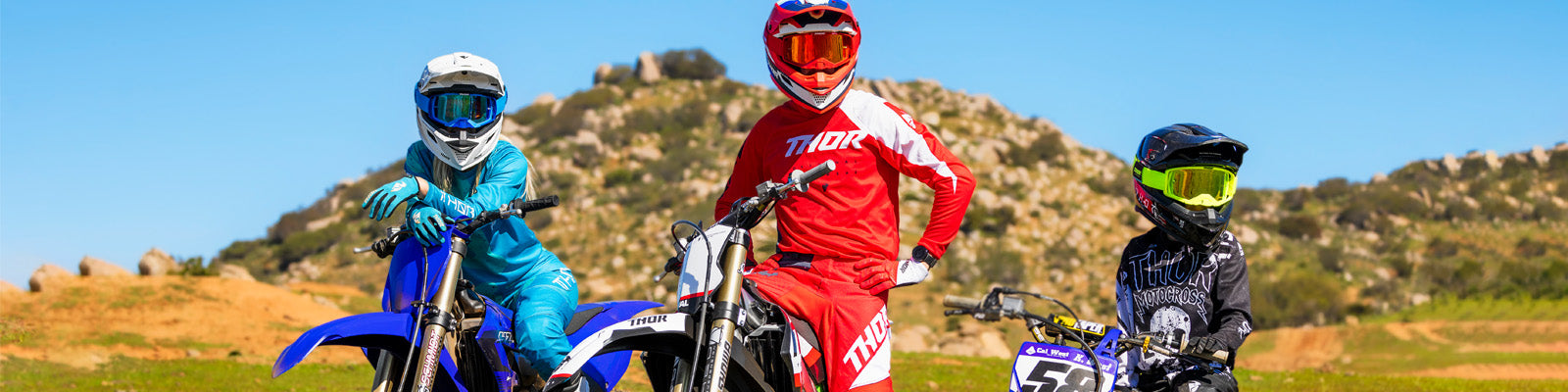 Due to popular demand we now stock a full range of Thor Motocross Clothing. The Thor Off Road / Enduro clothing range comes in an array of fantastic colours including lime green, blue, black, grey and white. We currently have full Thor Motocross kits that include Thor Motocross jerseys, Thor Motocross trousers and Thor Motocross gloves which can be purchased as part of a combo kit or separately.