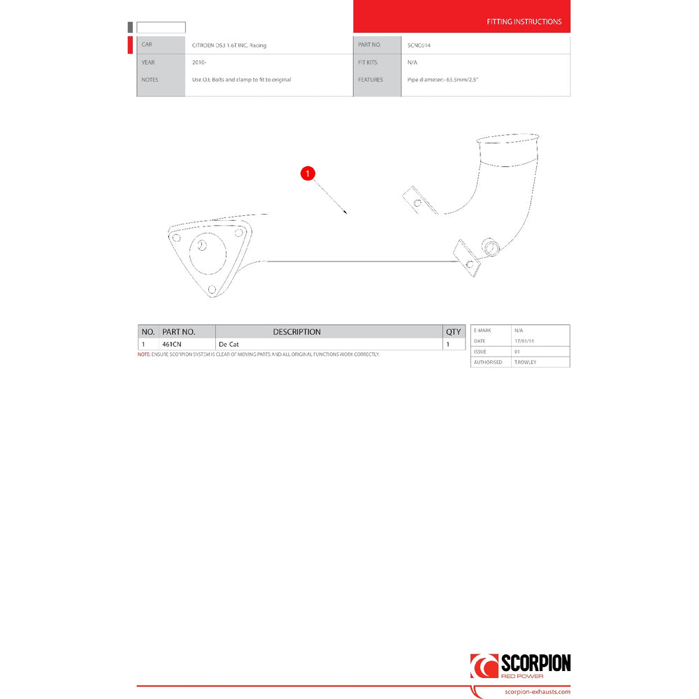 - SCNC014 - Scorpion Car Exhaust Catalyst Replacement - Citroen DS3 Racing & 1.6 T 2011 - 2015, consisting of: