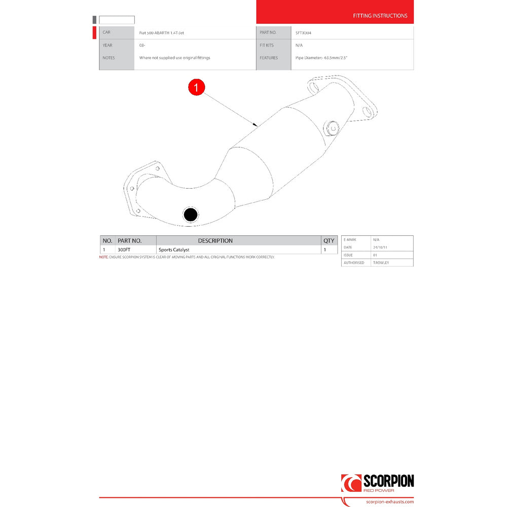 - SFTX004 - Scorpion Car Exhaust High Flow Sports Catalyst - Fiat 500 Abarth 1.4 Turbo 2008 - Current, consisting of: