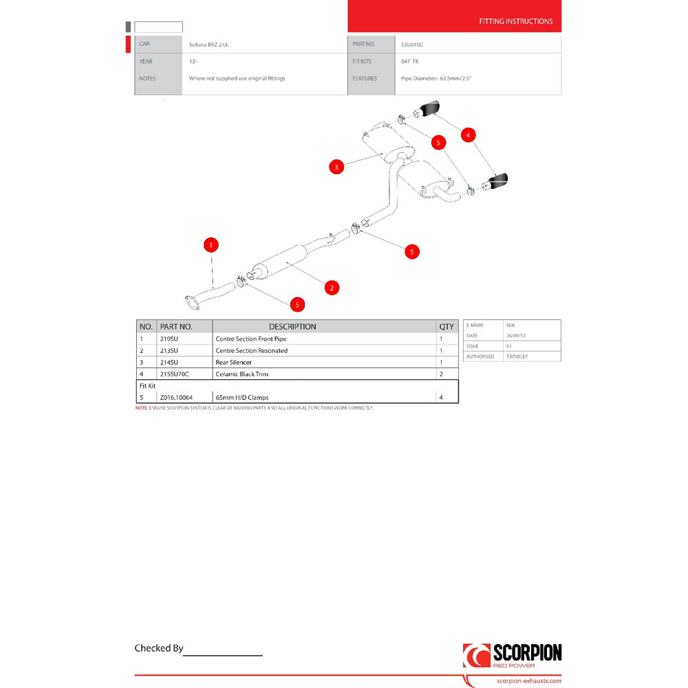 - SSU010C - Scorpion Car Exhaust Secondary Cat-Back System (Resonated) - Subaru BRZ 2012 - 2021, consisting of: