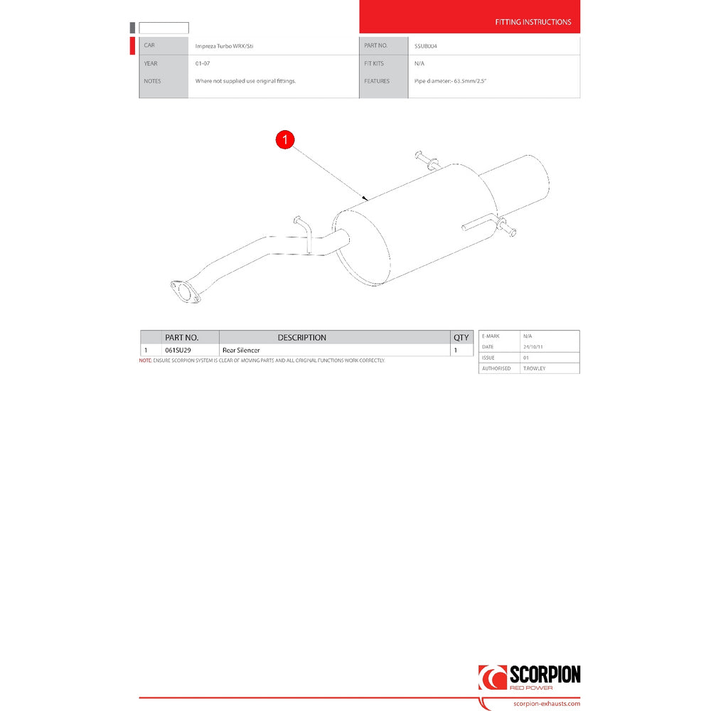 - SSUB004 - Scorpion Car Exhaust Rear Silencer Only - Subaru Impreza Turbo WRX & STI 2001 - 2007, consisting of: