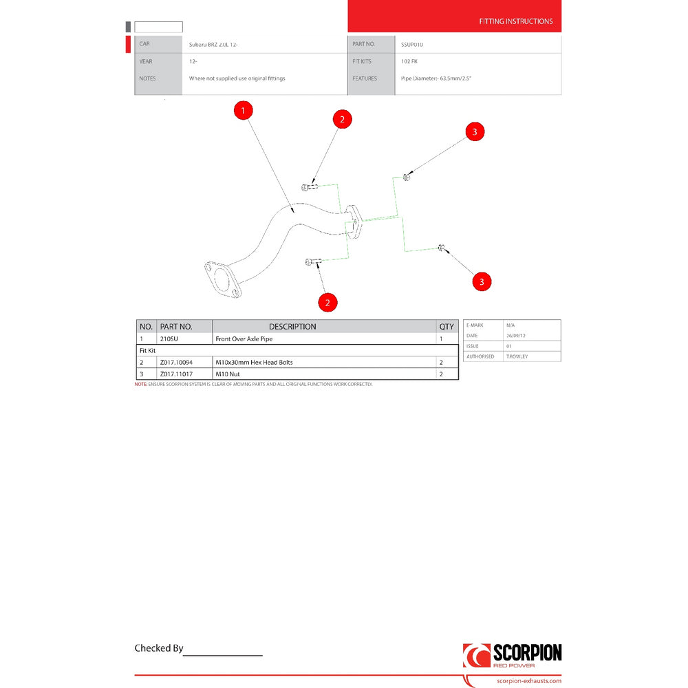 - SSUP010 - Scorpion Car Exhaust Downpipe - Subaru BRZ 2012 - 2021, consisting of: