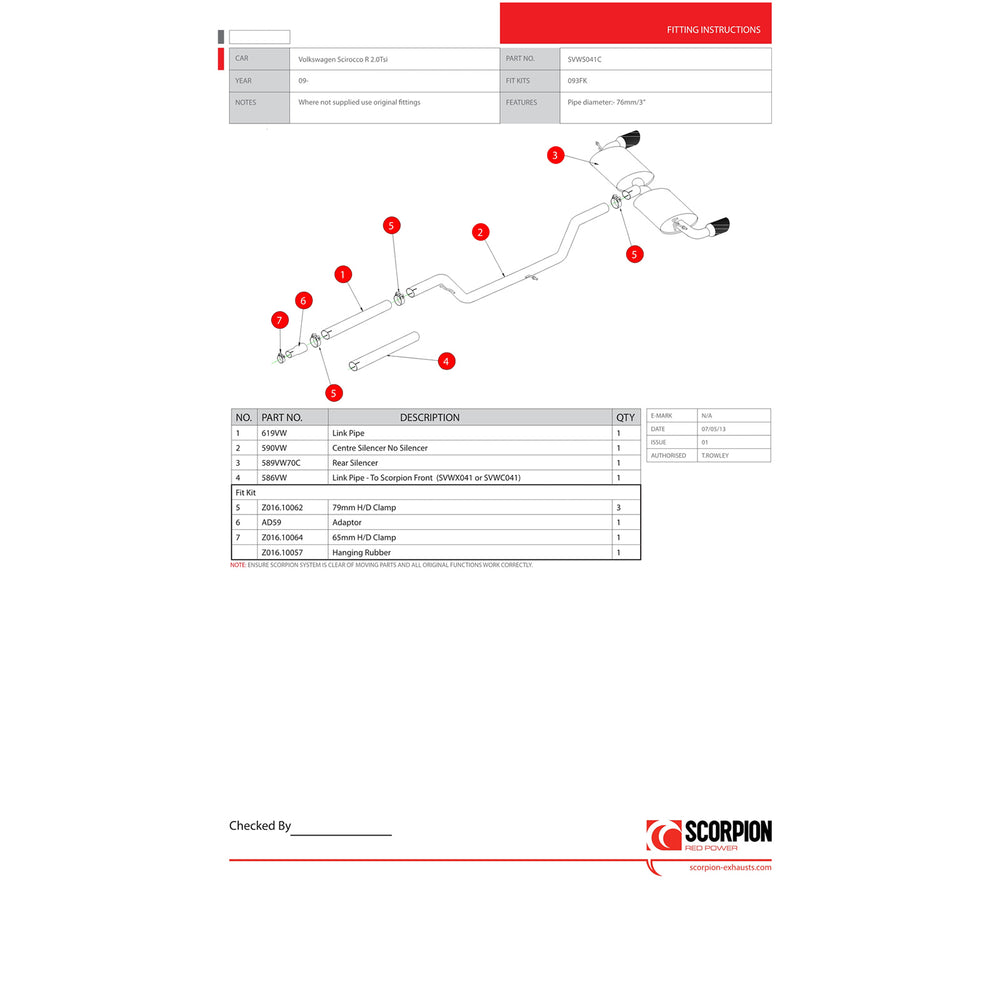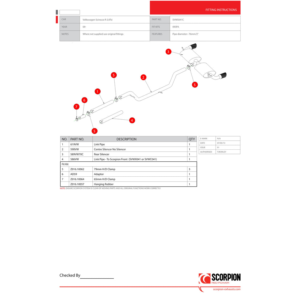 - SVWS041C - Scorpion Car Exhaust Cat-Back System (Non-Resonated) - Volkswagen Scirocco R 2009 - 2017, consisting of: