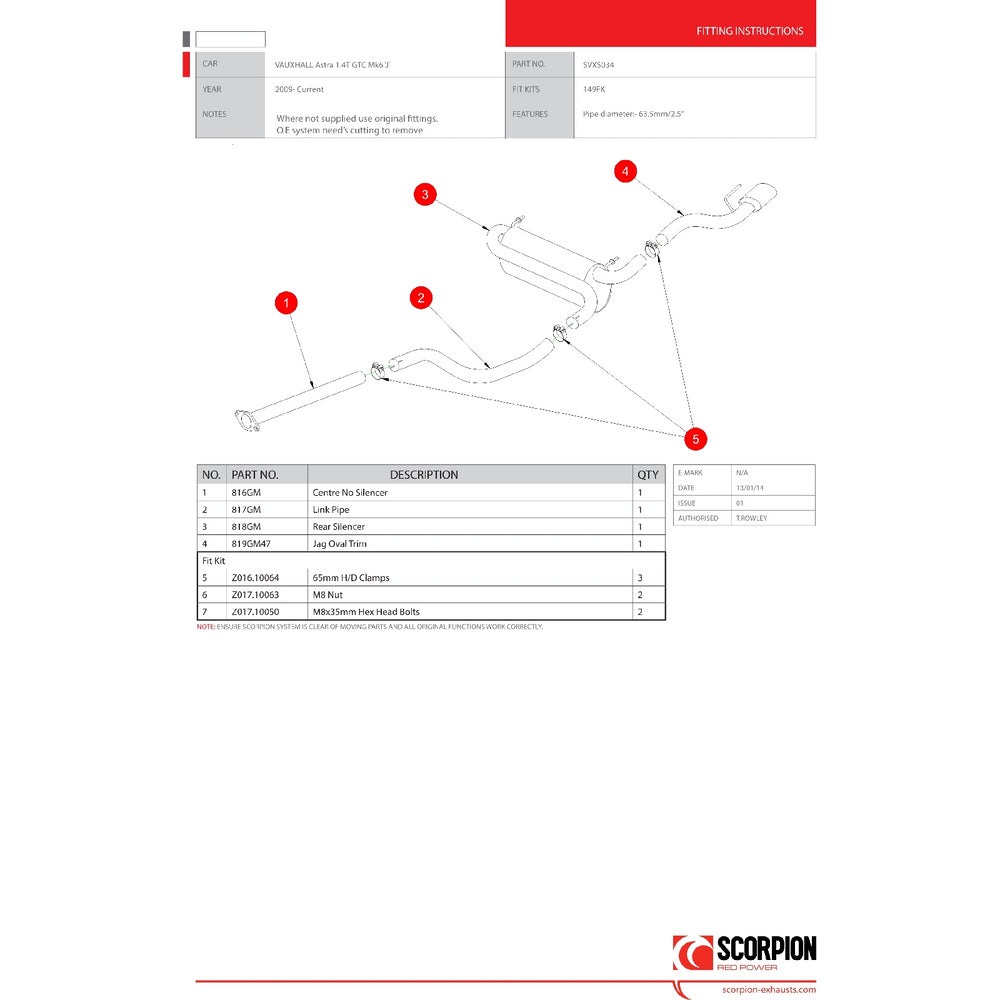 - SVXS034 - Scorpion Car Exhaust Secondary Cat-Back System (Non-Resonated) - Vauxhall Astra GTC 1.4 Turbo 2009 - 2016, consisting of: