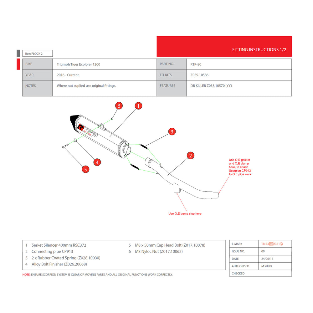 - Fittings/Instructions. All scorpion products are supplied with everything needed to fit and ride, along with parts drawings and picture Instruction where necessary.