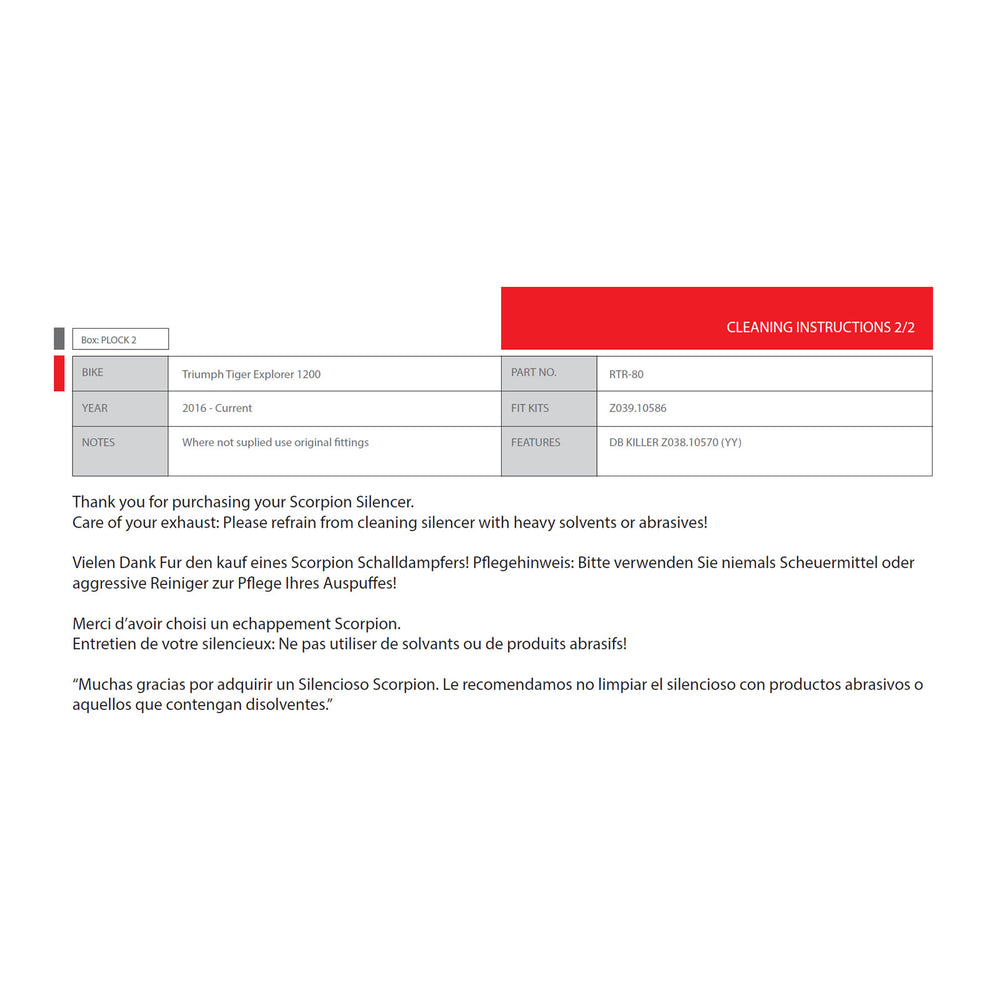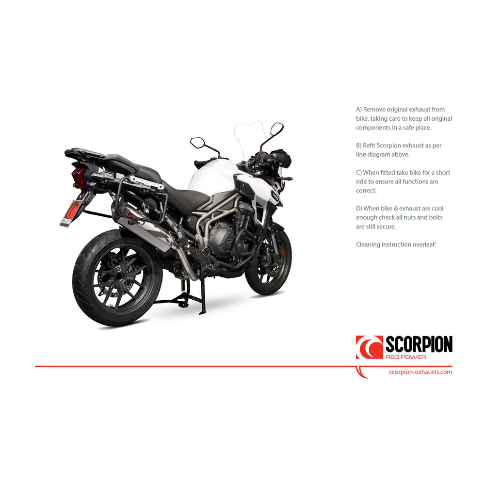 Now available from GhostBikes is the Scorpion Red Power Exhaust. This particular exhaust will fit a Triumph Tiger 1200 Explorer 2016 - 2021. Red Power evokes the passion, performance and heat of competition drawn from over 20 years of motorsport tuning and racing success. It embodies Scorpion's drive for continuous engineering superiority, product and performance refinement, and above all sheer riding and driving enjoyment. Red Power also gives you the comfort factor that the system you have specified has been hand crafted by a Scorpion automotive engineer in the UK - not mass produced in the far east like many of todays most expensive brands whose popularity is simply the result of paid endorsements, media manipulation and advertising hype. Treat your bike, Get a Scorpion Exhaust System from GhostBikes today!