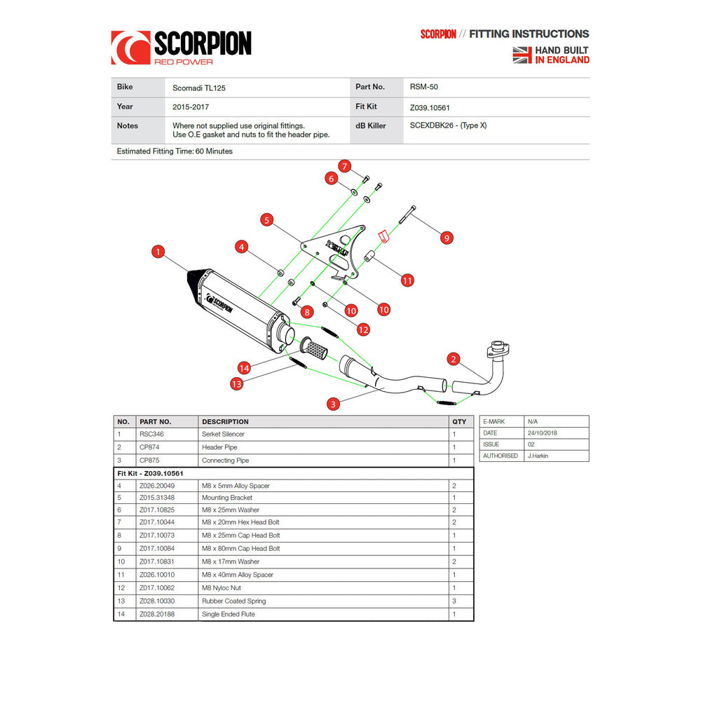- Fittings/Instructions. All scorpion products are supplied with everything needed to fit and ride, along with parts drawings and picture Instruction where necessary.