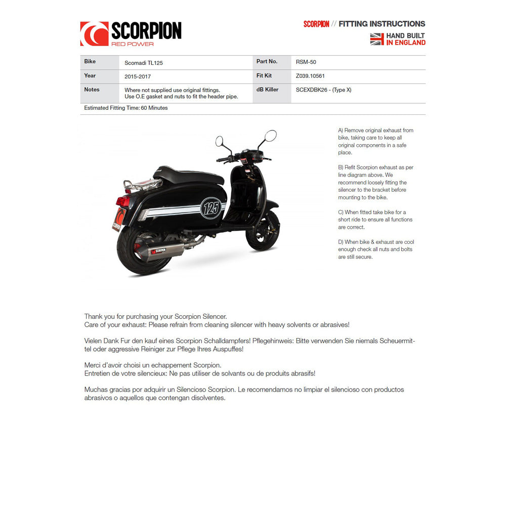 Now available from GhostBikes is the Scorpion Red Power Exhaust. This particular exhaust will fit a Scomadi TL 125 2015 - 2017. Red Power evokes the passion, performance and heat of competition drawn from over 20 years of motorsport tuning and racing success. It embodies Scorpion's drive for continuous engineering superiority, product and performance refinement, and above all sheer riding and driving enjoyment. Red Power also gives you the comfort factor that the system you have specified has been hand crafted by a Scorpion automotive engineer in the UK - not mass produced in the far east like many of todays most expensive brands whose popularity is simply the result of paid endorsements, media manipulation and advertising hype. Treat your bike, Get a Scorpion Exhaust System from GhostBikes today!