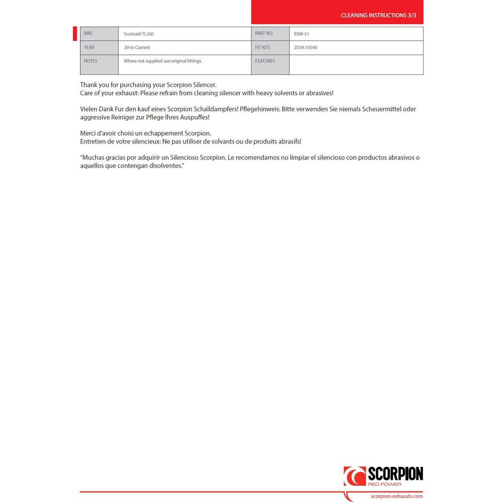Now available from GhostBikes is the Scorpion Red Power Exhaust. This particular exhaust will fit a Scomadi TL 200 2016 - 2017. Red Power evokes the passion, performance and heat of competition drawn from over 20 years of motorsport tuning and racing success. It embodies Scorpion's drive for continuous engineering superiority, product and performance refinement, and above all sheer riding and driving enjoyment. Red Power also gives you the comfort factor that the system you have specified has been hand crafted by a Scorpion automotive engineer in the UK - not mass produced in the far east like many of todays most expensive brands whose popularity is simply the result of paid endorsements, media manipulation and advertising hype. Treat your bike, Get a Scorpion Exhaust System from GhostBikes today!