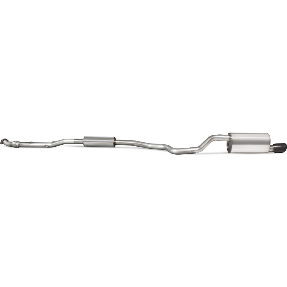 The system is constructed from 63.5 mm T304 stainless steel pipe work and is available in resonated or non resonated format. The acoustically developed cat-back systems eliminate in-cabin drone but produce a sportier tone which isn't excessive for day to day driving.
