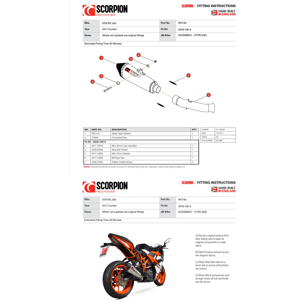 - Fittings/Instructions - All Scorpion products are supplied with everything needed to fit and ride, along with parts drawings and picture instructions where necessary