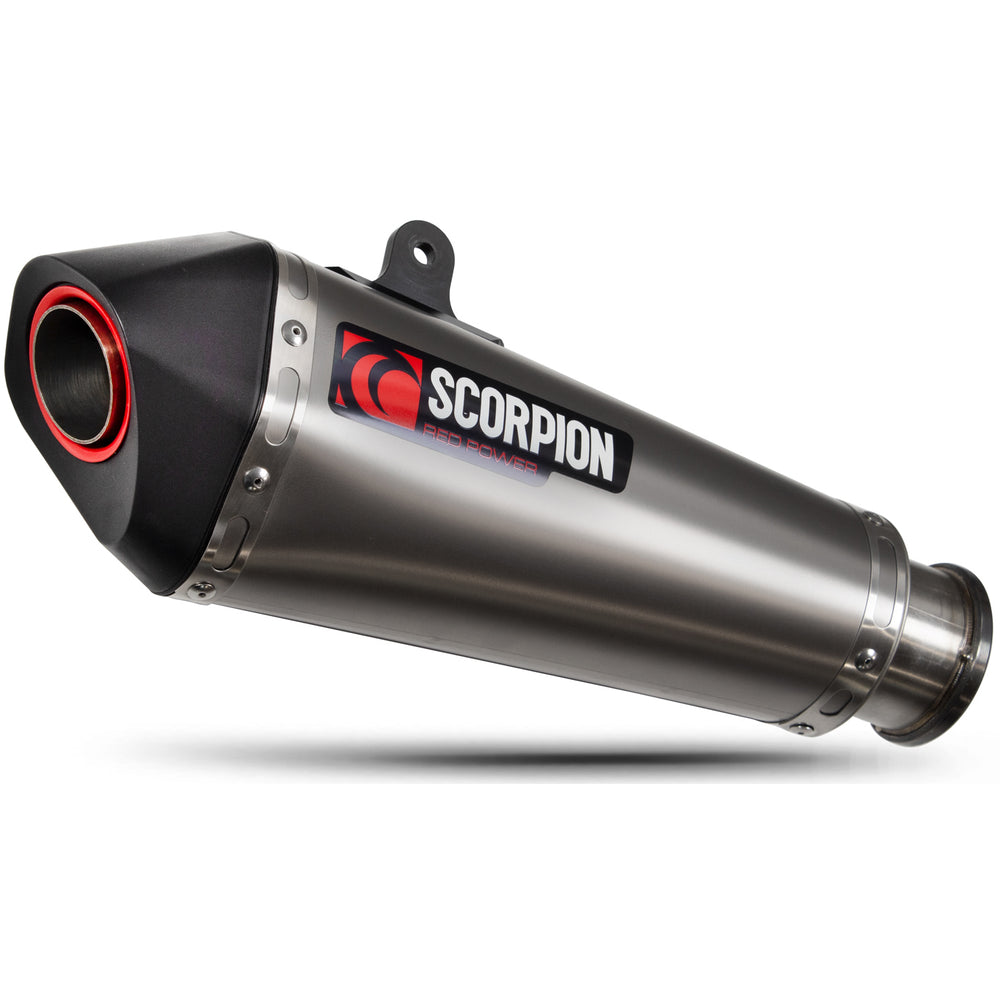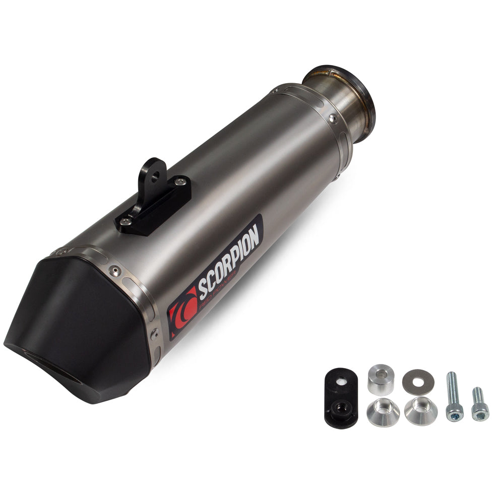 For 17-Current models Scorpion technicians have developed a hexagonal Serket Taper silencer for the bike which can be selected in a brushed stainless steel, carbon fibre or satin titanium finishes. The stylish composite end cap also features a red outlet port for Scorpion identification.