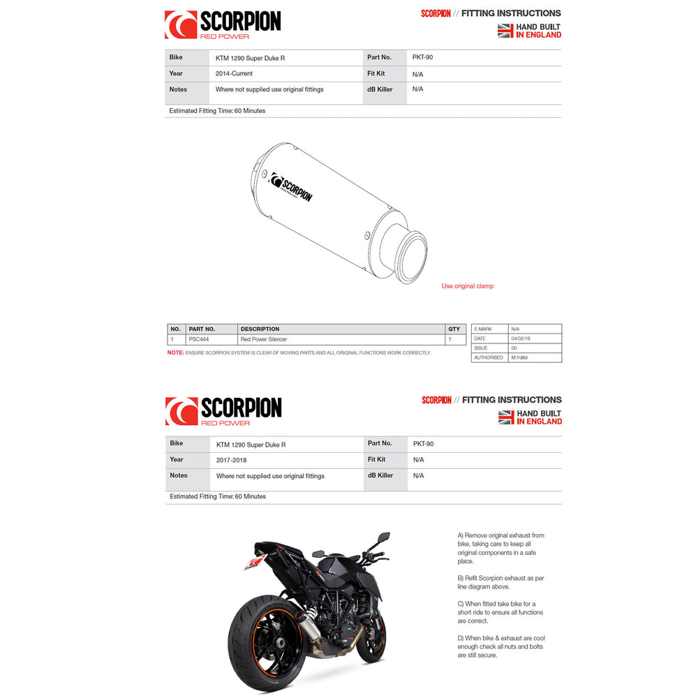 - PKT90TEO - Scorpion Red Power Titanium Exhaust - KTM 1290 Super Duke R 2014 - 2019 / GT 2014 - 2021, consisting of: