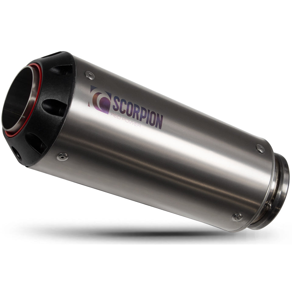 For 14-Current models Scorpion technicians have developed a new Red Power silencer which can be selected in brushed stainless steel, black ceramic and satin titanium finishes. The Red Power silencer is new for 2019 and features a CNC machined end cap with unique Red outlet port for Scorpion identification, a subtly tapered sleeve to increase overall visual satisfaction support by a laser engraved logo. The silencer internals are constructed from high quality materials which help produce a well suited exhaust tone.