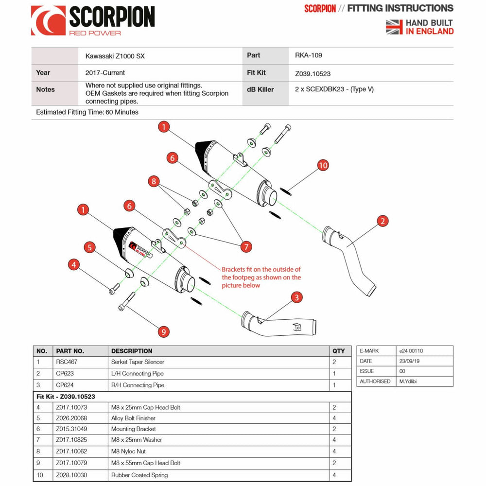 - Fittings/Instructions - All Scorpion products are supplied with everything needed to fit and ride, along with parts drawings and picture instructions where necessary