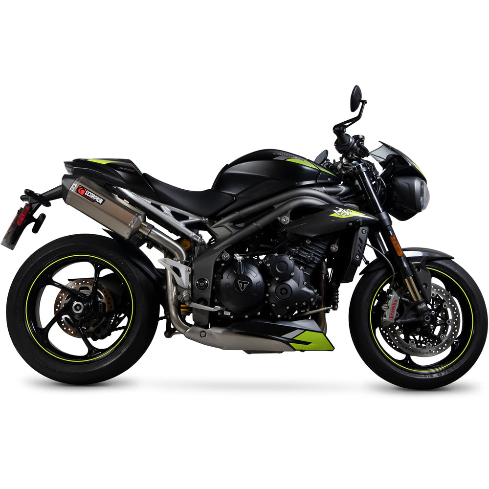 The Scorpion Serket Parallel Satin Titanium Exhaust compatible with Triumph Speed Triple 1050 S & RS 2018 - 2020 is part of the latest Scorpion Exhausts collection.