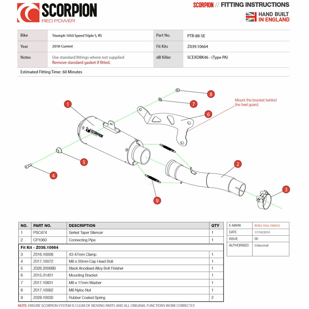 - Fittings/Instructions - All Scorpion products are supplied with everything needed to fit and ride, along with parts drawings and picture instructions where necessary