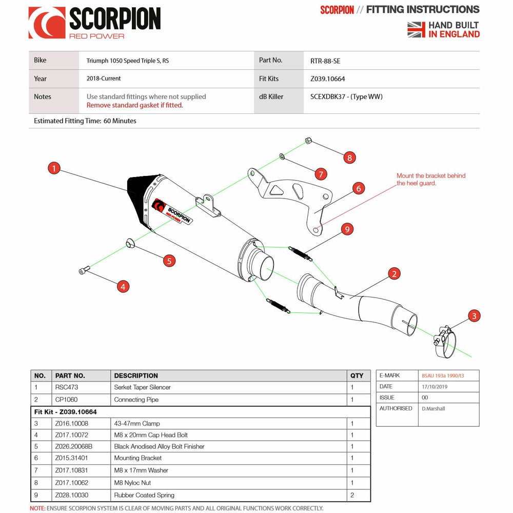 - Fittings/Instructions - All Scorpion products are supplied with everything needed to fit and ride, along with parts drawings and picture instructions where necessary
