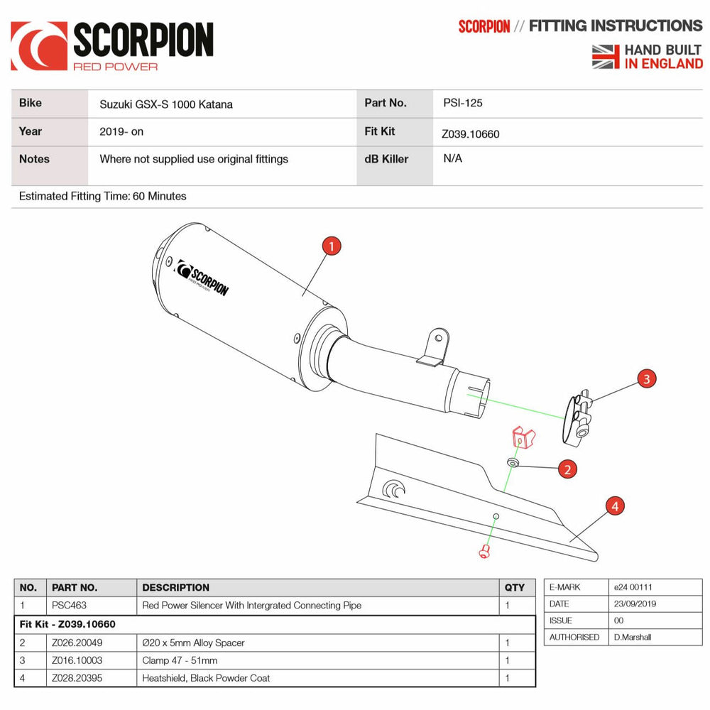 - PSI125SEO - Scorpion Red Power Stainless Steel Exhaust - Suzuki GSX-S 1000 Katana 2019 - 2021, consisting of: