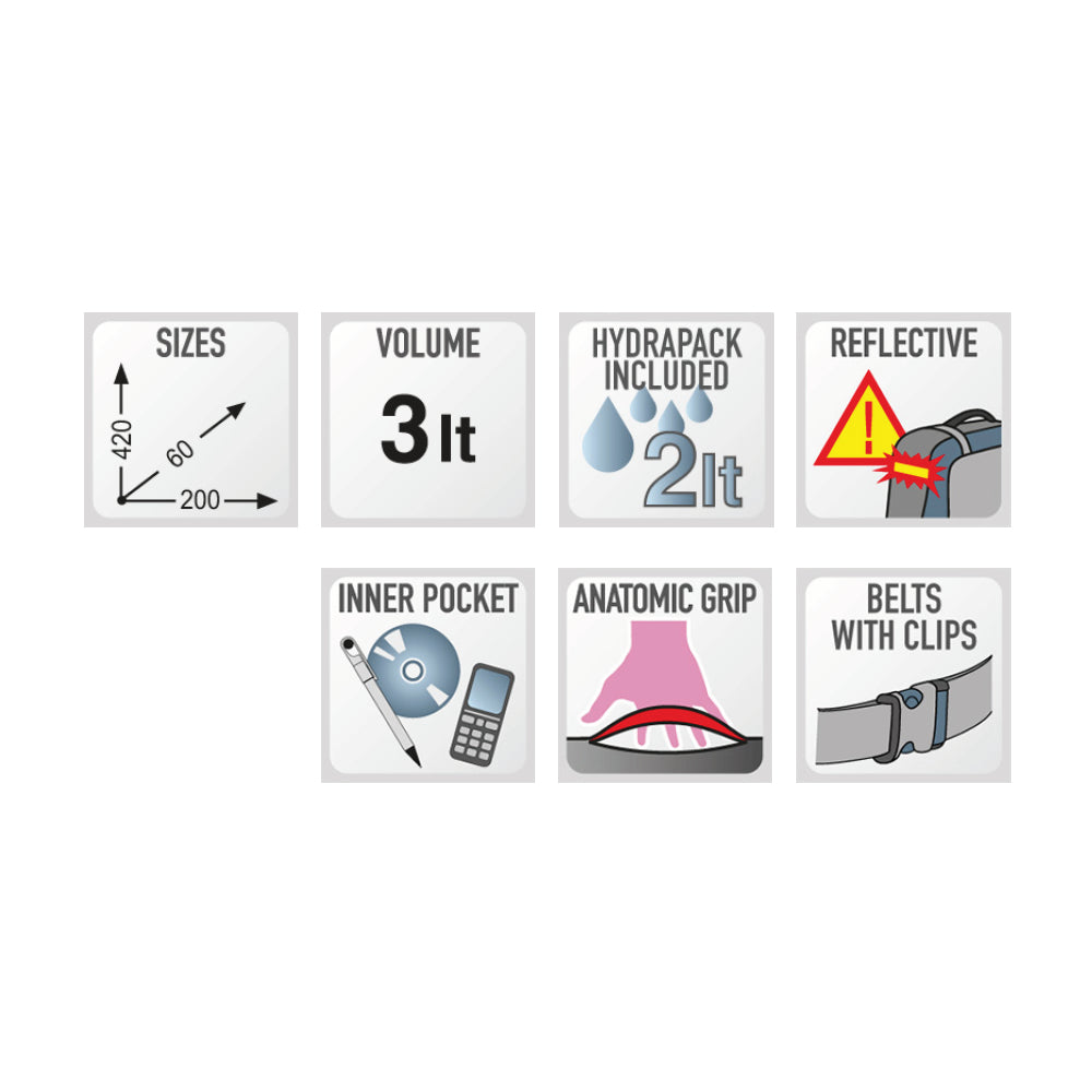 - Main pocket with HydraPak Elite 2L water bag included