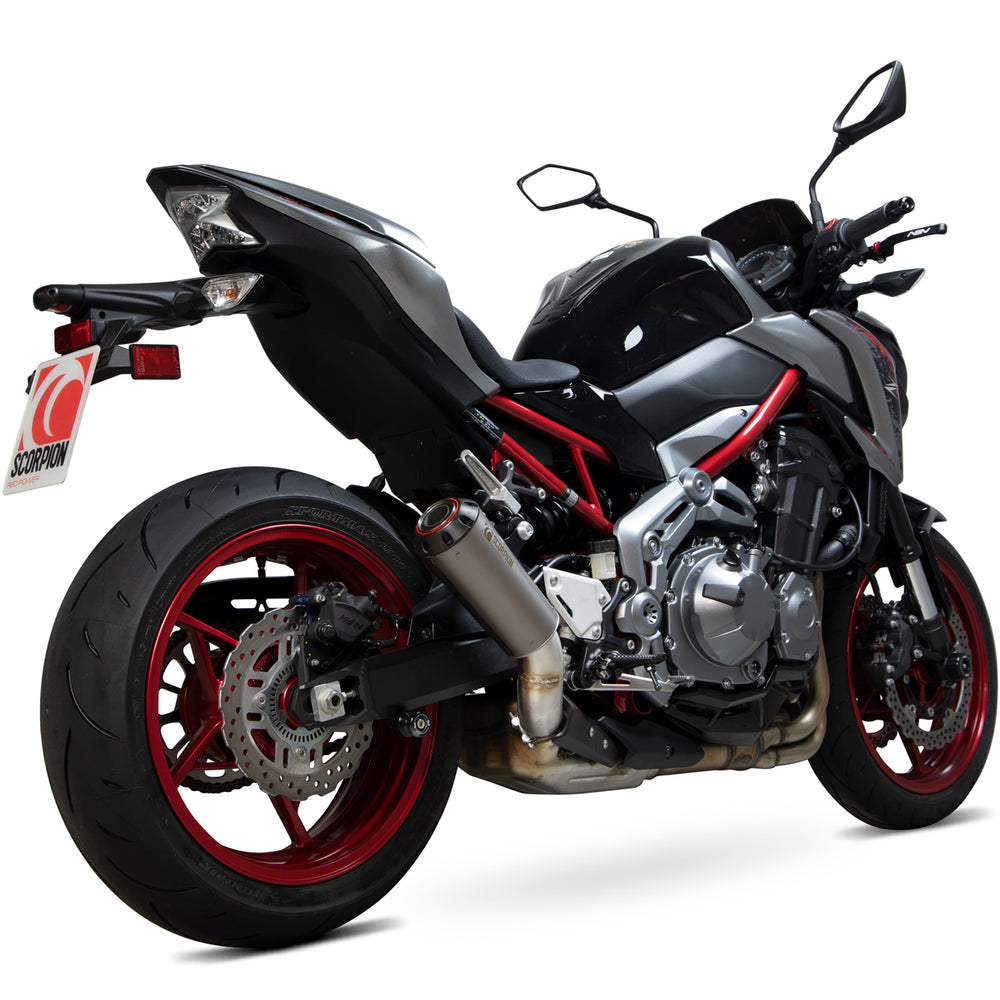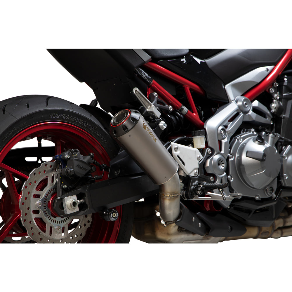 The Scorpion Red Power Satin Titanium Exhaust - Kawasaki Z900 / Z900 A2 2017 - 2019 is part of the latest Scorpion Exhausts collection.