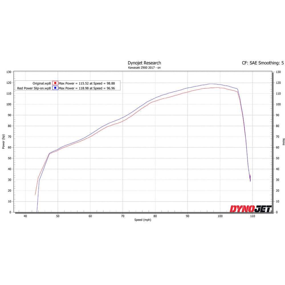 The dyno developed exhaust has been proven on both the road and dyno through a range of thorough tests. When installed the Red Power kit enhances the bikes overall rideability, increases BHP and creates a smoother power curve. Using the latest manufacturing techniques the weight compared against the stock slip-on is halved complementing the Z900's riding style.