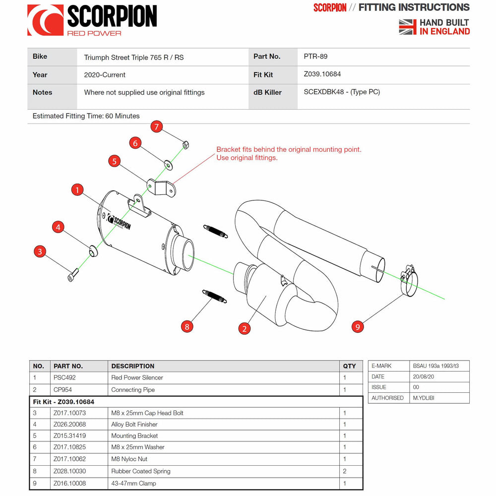 - Fittings/Instructions - All Scorpion products are supplied with everything needed to fit and ride, along with parts drawings and picture instructions where necessary