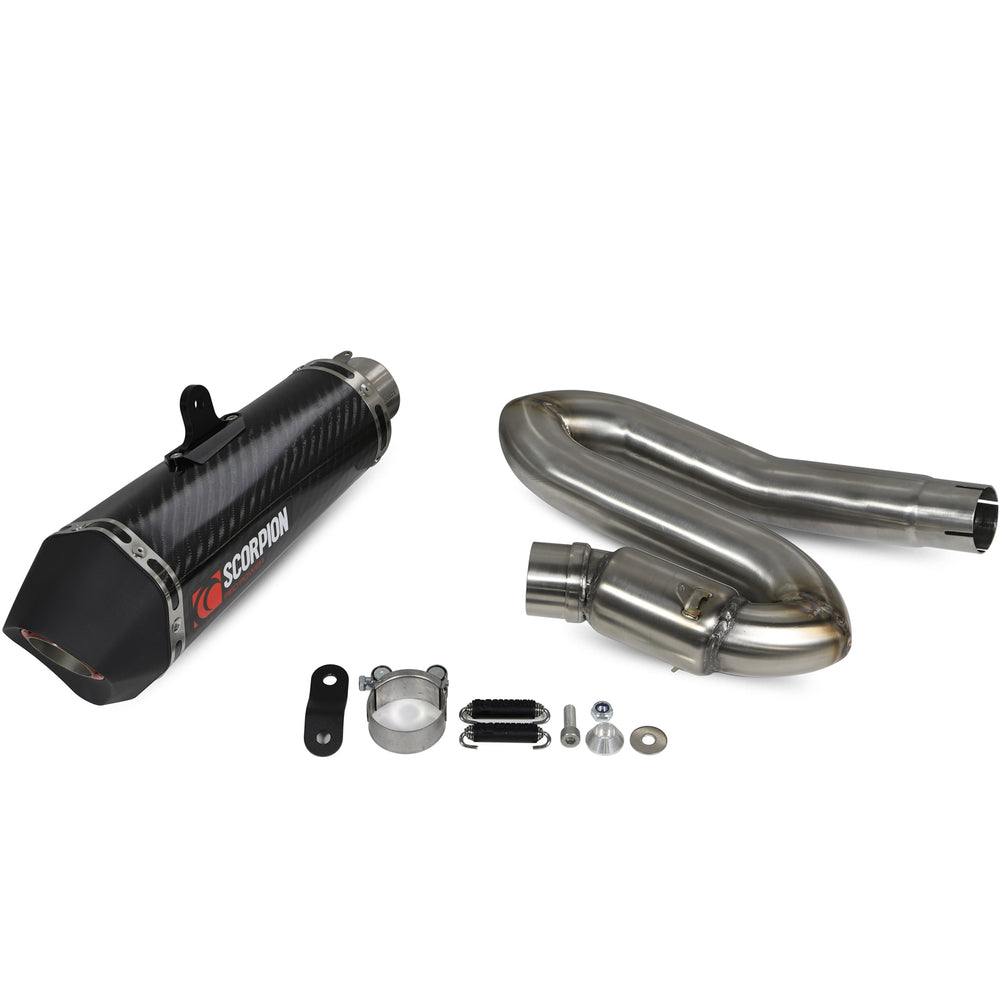 - RTR89CEO - Scorpion Serket Taper Carbon Fibre Exhaust - Triumph Street Triple 765 R & RS 2020 - 2021, consisting of: