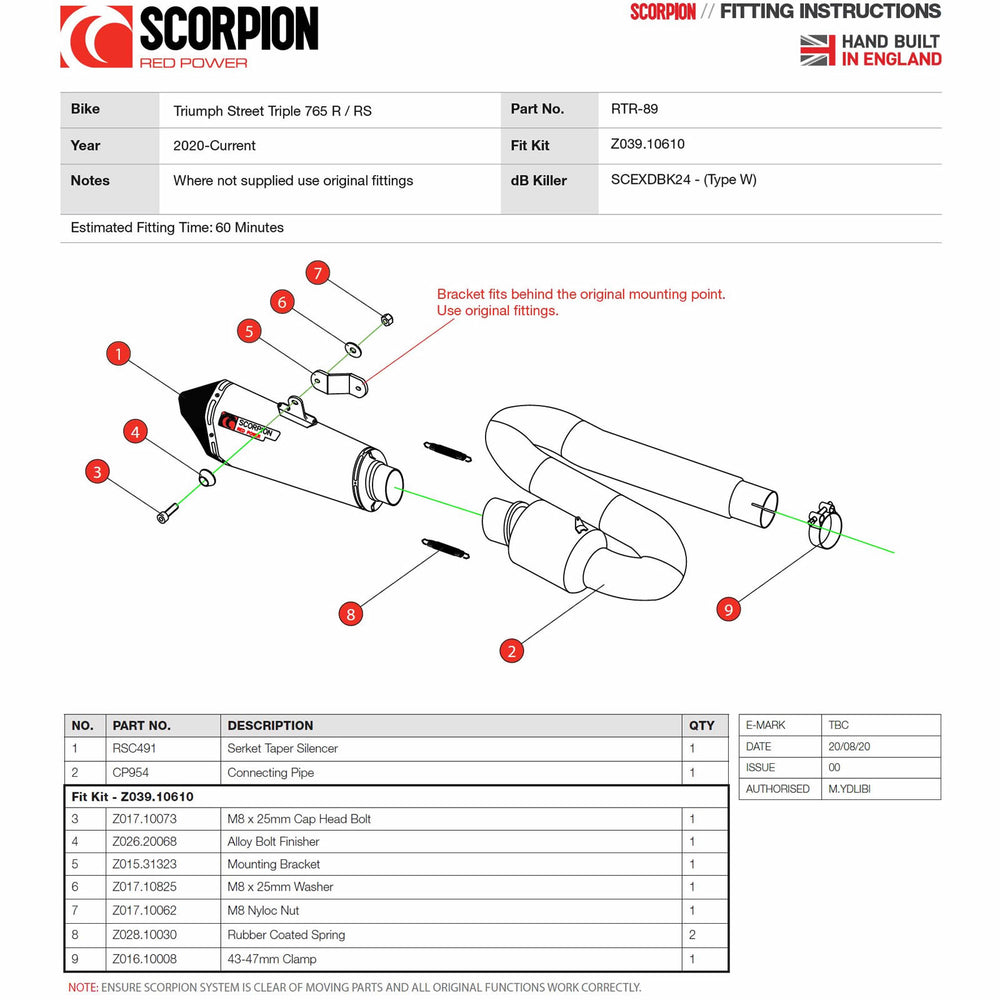 - Fittings/Instructions - All Scorpion products are supplied with everything needed to fit and ride, along with parts drawings and picture instructions where necessary