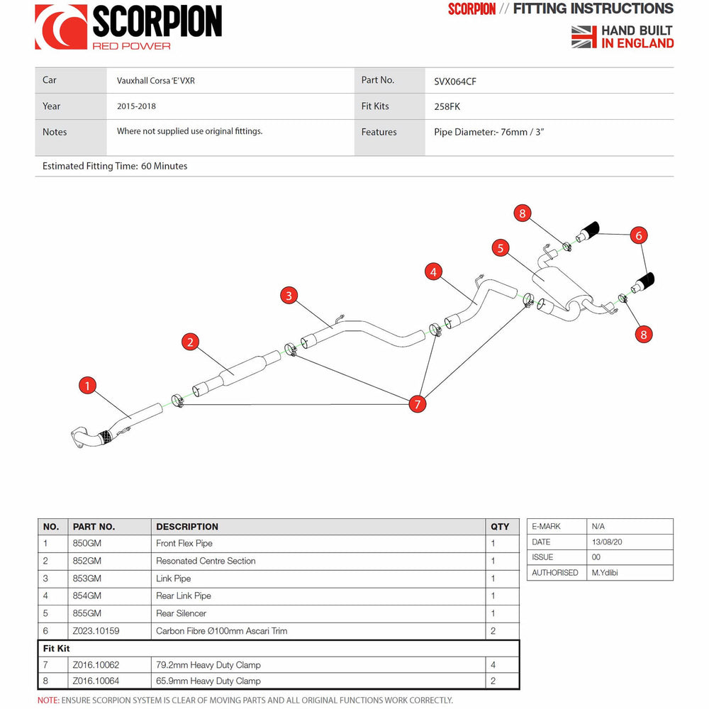 - SVX064CF - Scorpion Car Exhaust Cat-Back System (Resonated) Carbon Fibre Ascari - Vauxhall Corsa E VXR 2015 - 2018, consisting of: