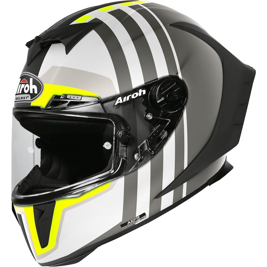 The new GP 550 S redefines the level of performance on the road and on tracks. Designed in the wind tunnel, tested by Airoh's riders and refined by the company's know-how, GP 550 S stands at the top of the racing segment, without losing sight of the comfort and practicality features for an intensive use. Innovative rear spoilers create a displacing effect at high speeds and the internally channelled structure provides an effective air extraction. Shells in 3 different sizes, made of HPC (High Performance Composite), type-approved 2D racing visor with quick release, 8 air vents to ensure optimal ventilation, Pinlock lens included, tear-off ready, wind-stop and A.E.F.R. (Airoh Emergency Fast Release) system for quick removal of the cheek pads in case of emergency, complement this state-of-the-art product.