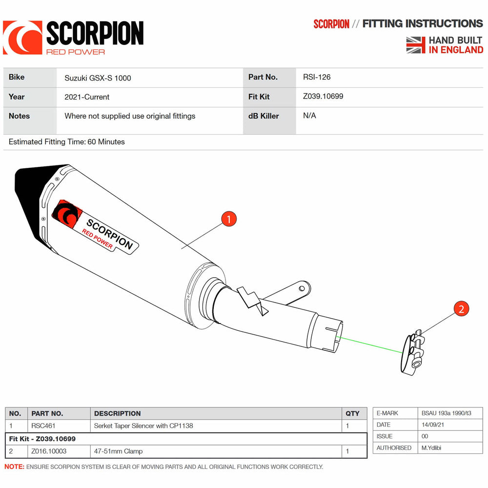 - RSI126CEO - Scorpion Serket Taper Carbon Fibre Exhaust - Suzuki GSX-S 1000 2021 - 2022, consisting of: