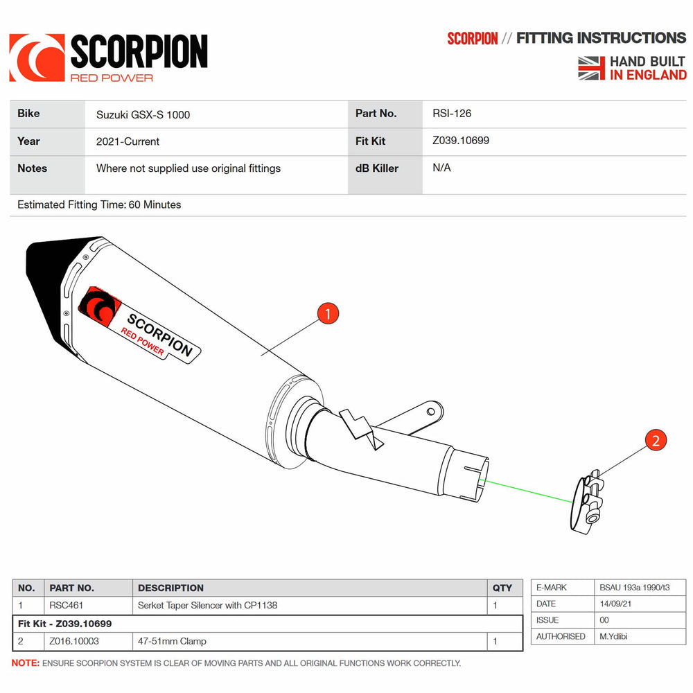 - RSI126SEO - Scorpion Serket Taper Brushed Stainless Steel Exhaust - Suzuki GSX-S 1000 2021 - 2022, consisting of: