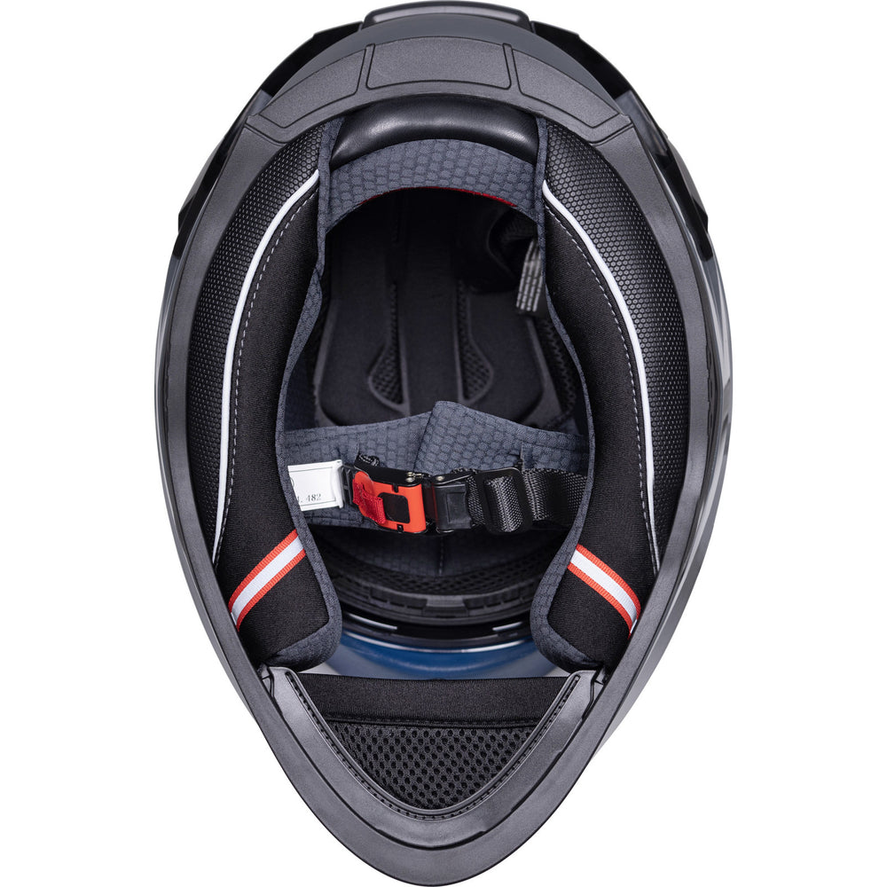 • Emergency Cheek Pad Release System - In the event of an accident this allows emergency responders to remove the helmet from the head more easily, minimising forces on the rider's neck. The reflective loops on the underside of the helmet are pulled firmly, removing the cheekpads in a downward direction, allowing easier removal of the helmet.