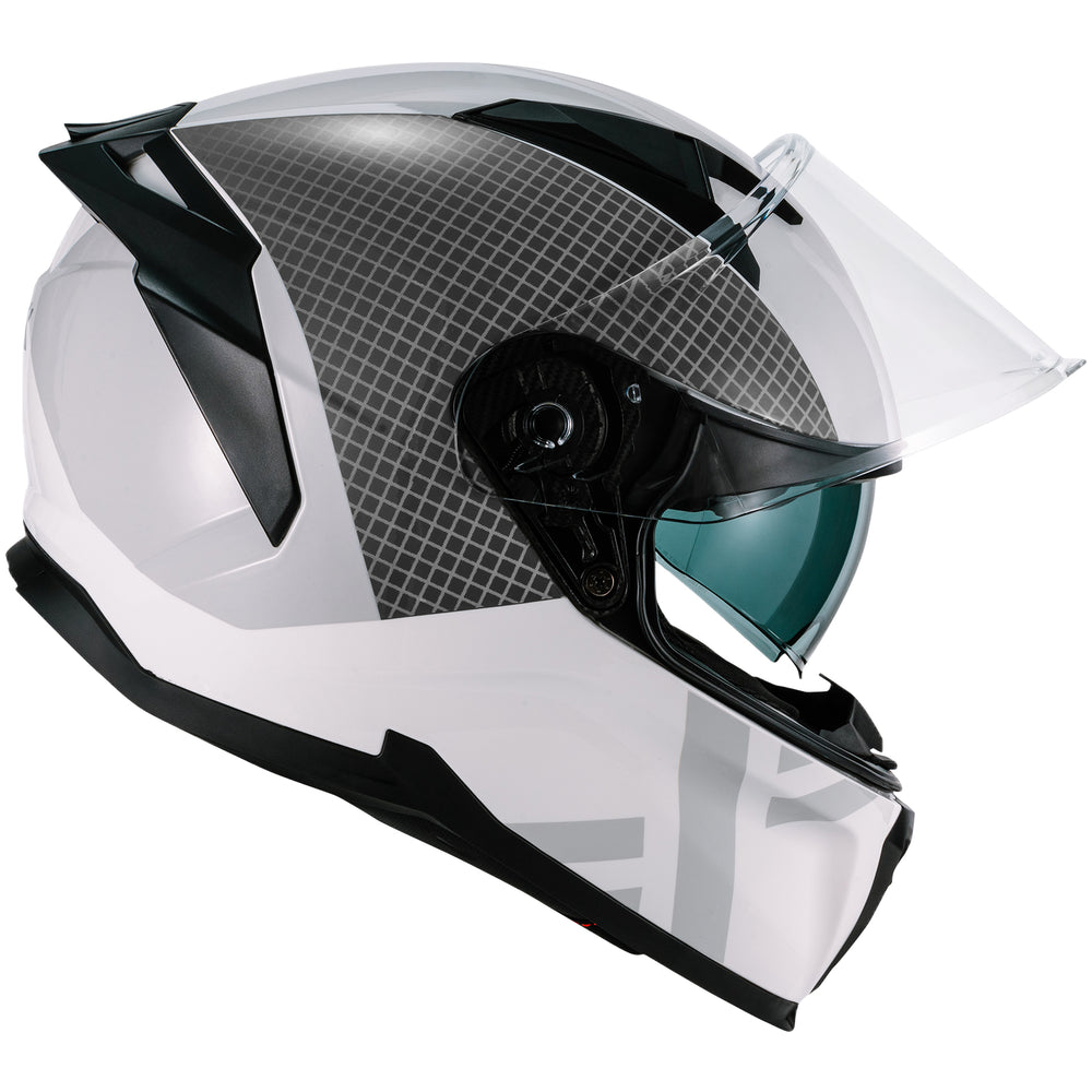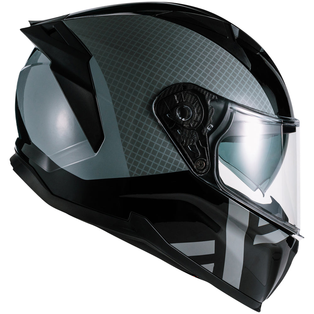 - Aerodynamic Full Face Sports Design With Spoiler - Its angular rear spoiler finishes the look and assists with airflow over the surface of the helmet.
