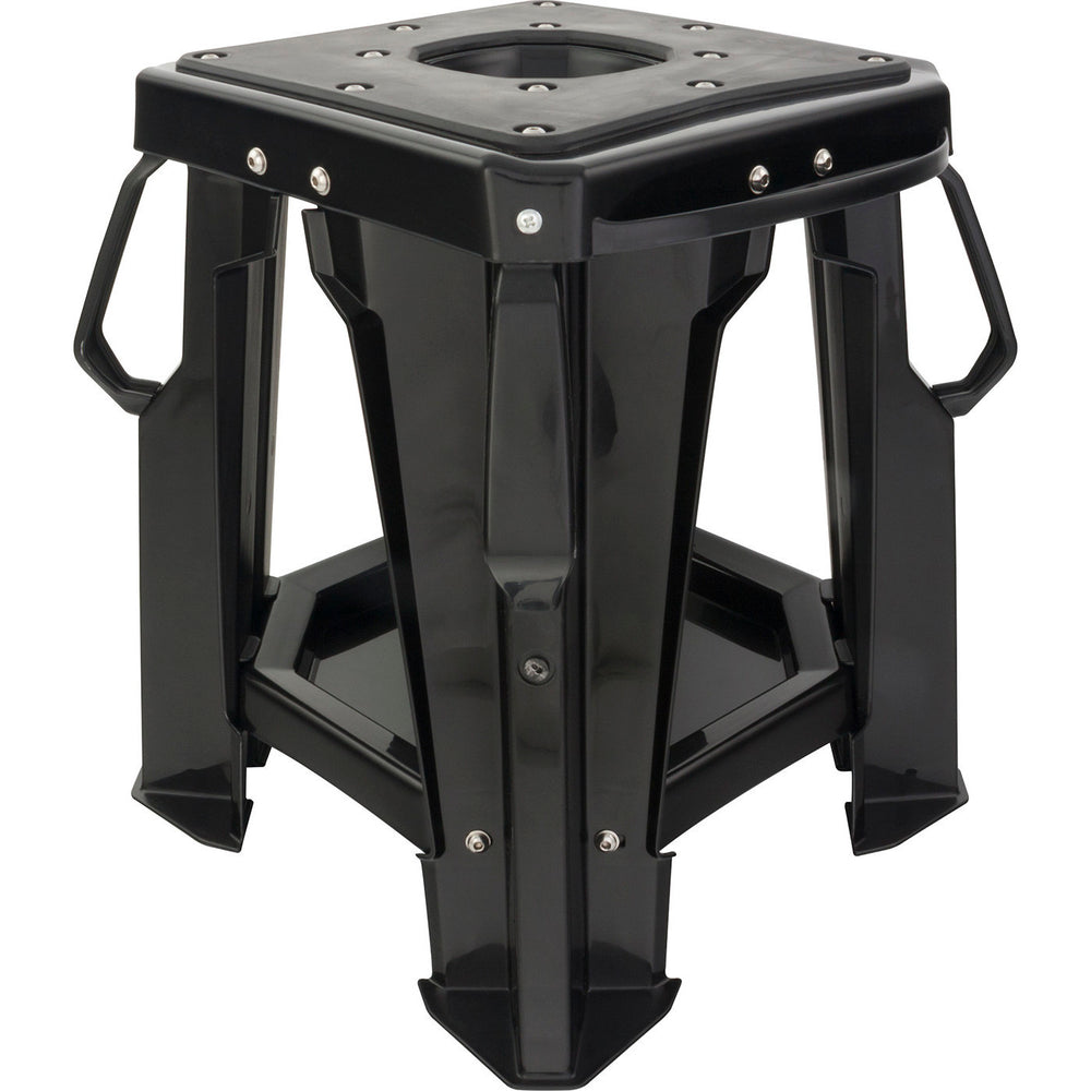 Durable and robust injection moulded MX stand with rubber mat surface with access cutaway. Lightweight but extremely strong and featuring parts and tools undertray and side handles.