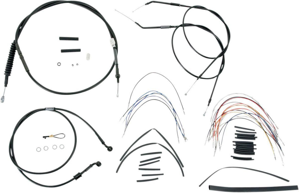 - Kit is based on using 2" risers with ape hanger-style handlebars. Includes extended single-disc black braided steel brake line, extended clutch cable, extended throttle cables and all necessary wiring.