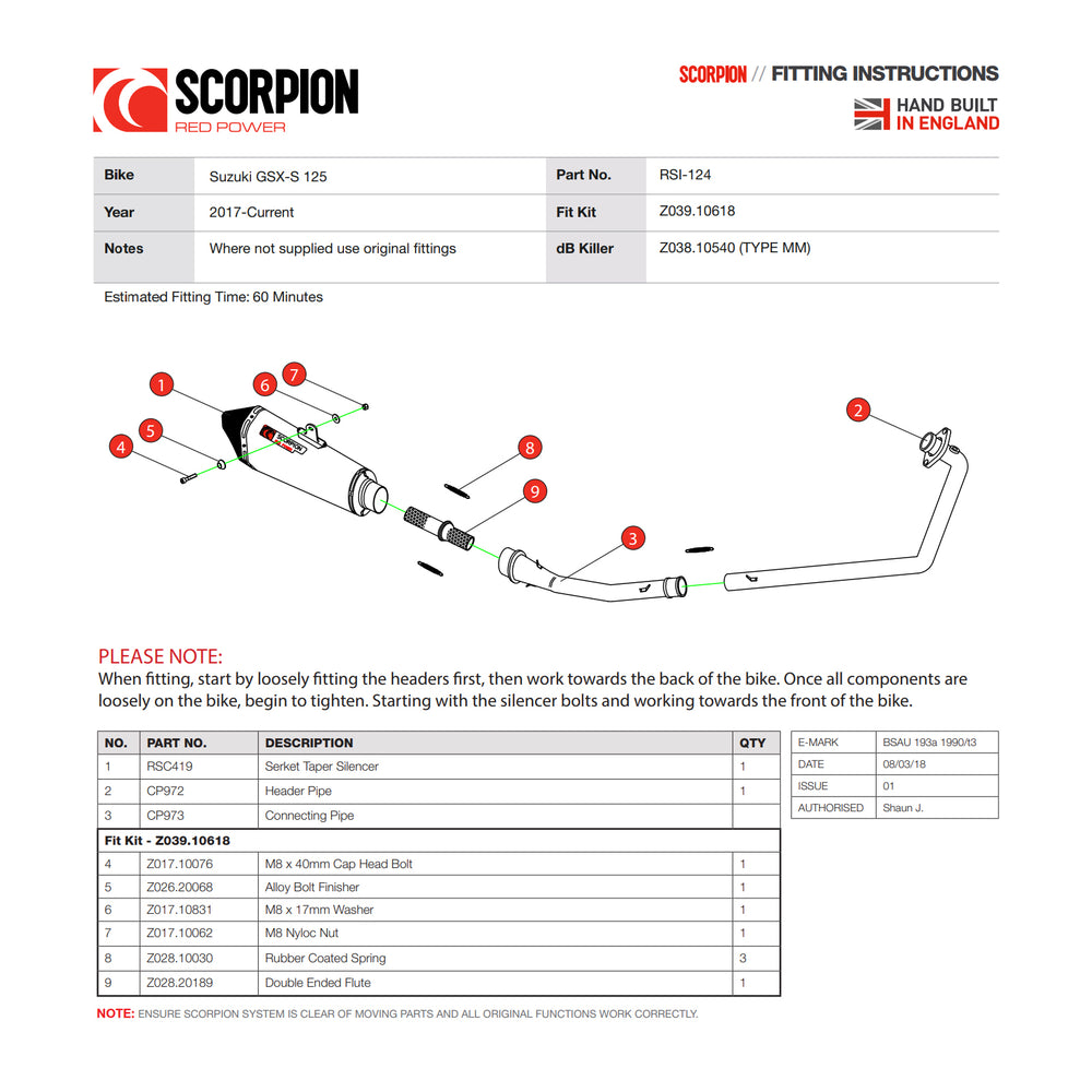 - Fittings/Instructions - All Scorpion products are supplied with everything needed to fit and ride, along with parts drawings and picture instructions where necessary