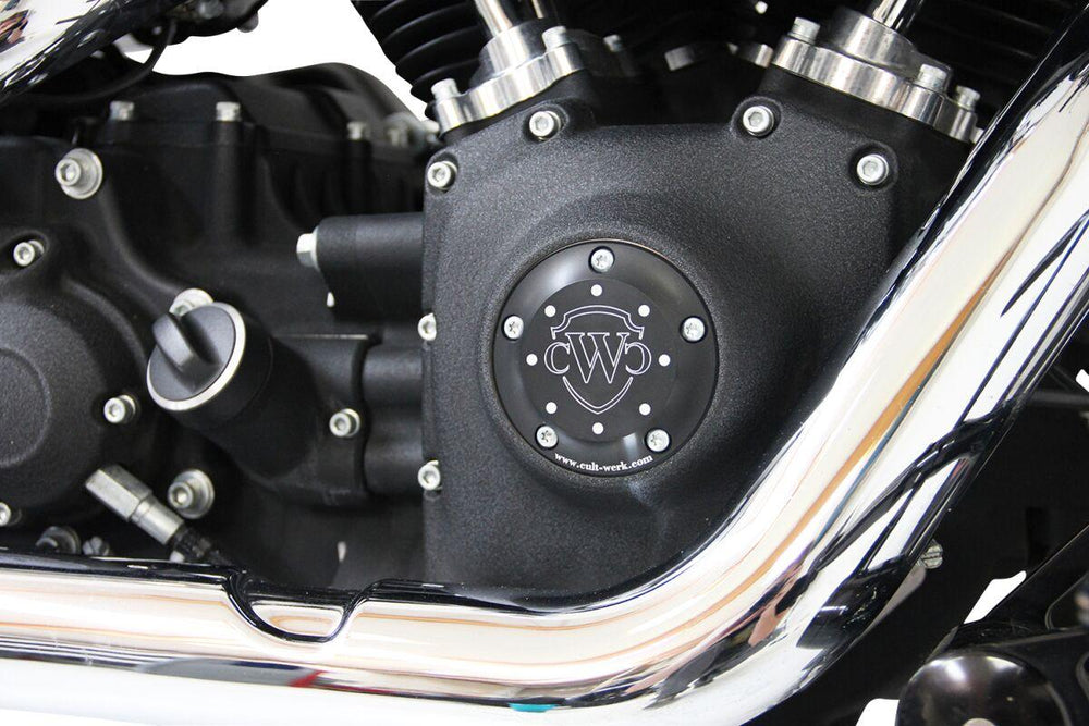 - The Cult-Werk ignition cover (timer cover) is anodized black and comes with the Cult-Werk logo