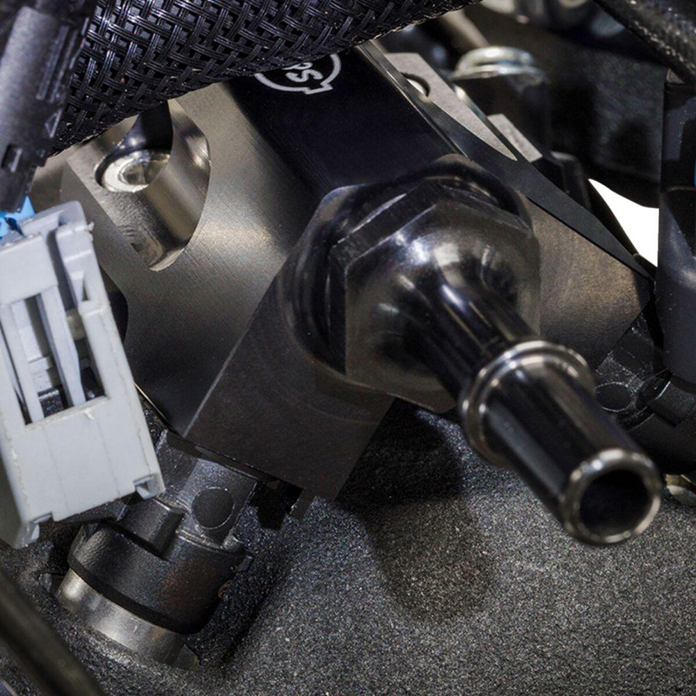 - Eliminates worry about cracks and leaks from the plastic OEM fuel rail