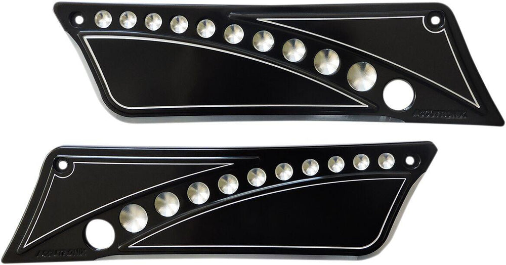 The Accutronix Drilled Saddlebag Latch Covers For Harley Davidson FLHR 1340 1994-1998 - Black is part of the latest collection from Accutronix.