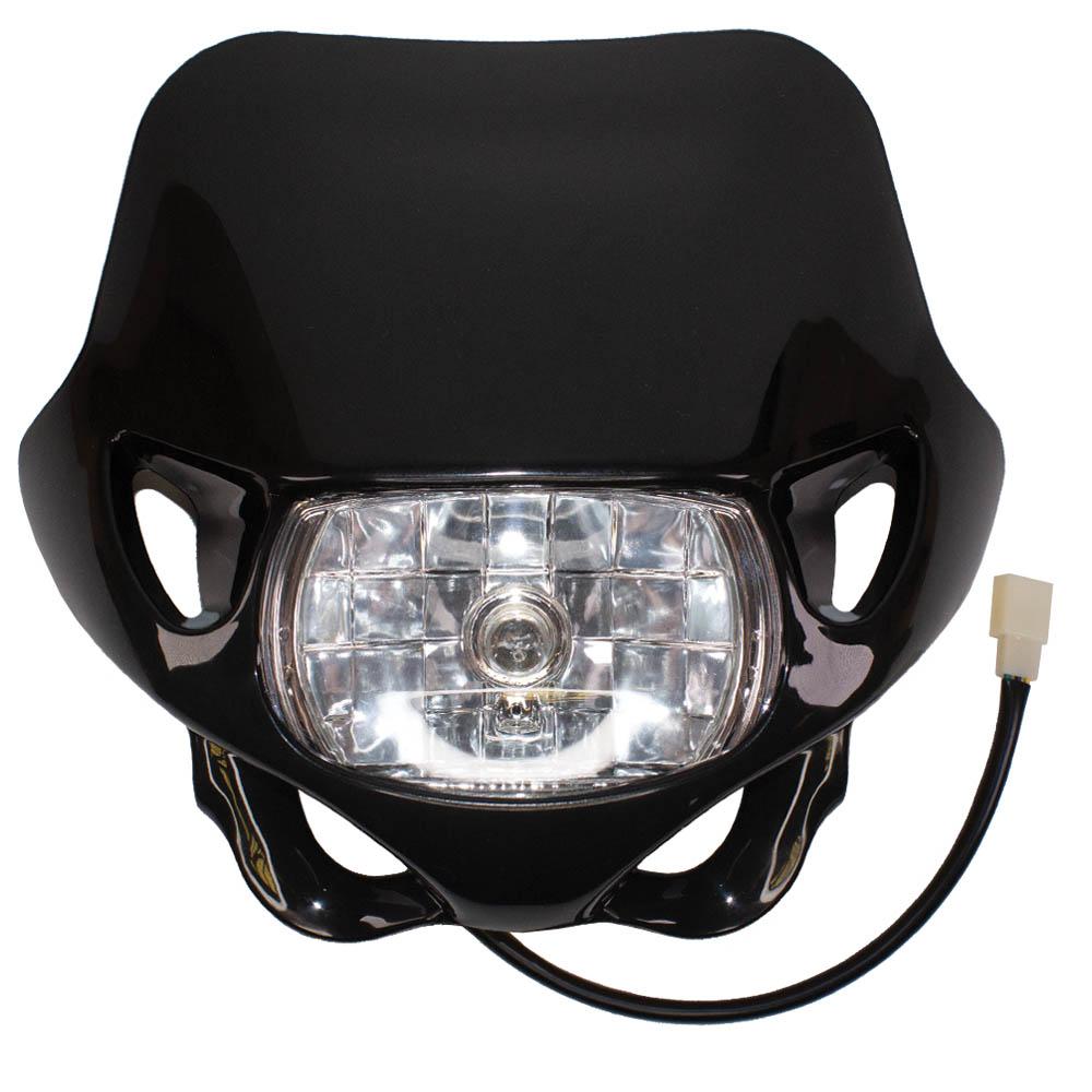 MX/Enduro style universal headlight unit with hi & Low Beam halogen bulb.