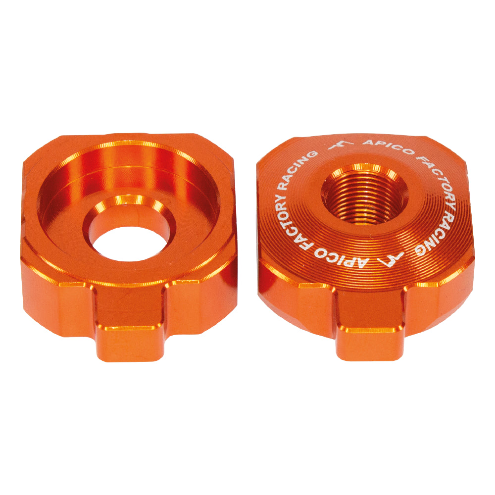 The Apico Rear Axle Blocks For KTM/Husqvarna/Gas Gas SX/SX-E50 2020-2023, TC50/EE-5 2020-2023, MC50/MC-E5 2021-2023 Orange is part of the latest collection from Apico.
