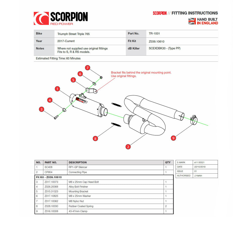 - Fittings/Instructions - All Scorpion products are supplied with everything needed to fit and ride, along with parts drawings and picture instructions where necessary