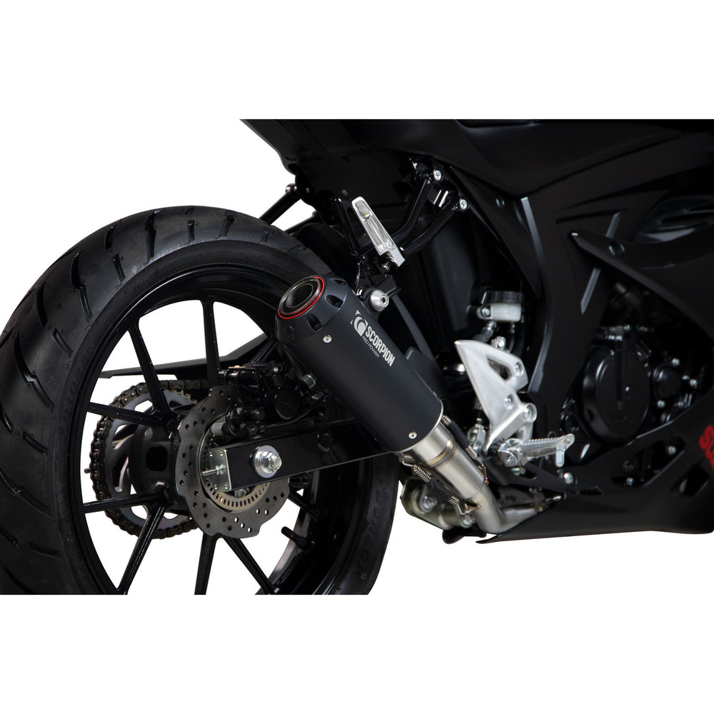 The Scorpion Red Power Full System Black Ceramic Exhaust - Suzuki GSX-R 125 2017 - 2021 is part of the latest Scorpion collection.