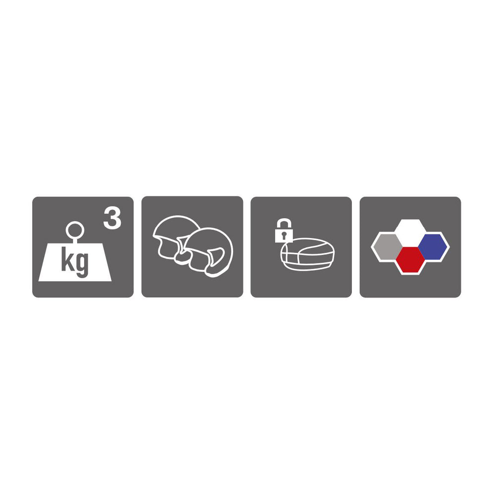- Capacity: 37 L (fits up to two open face helmets or one full face helmet plus accessories)