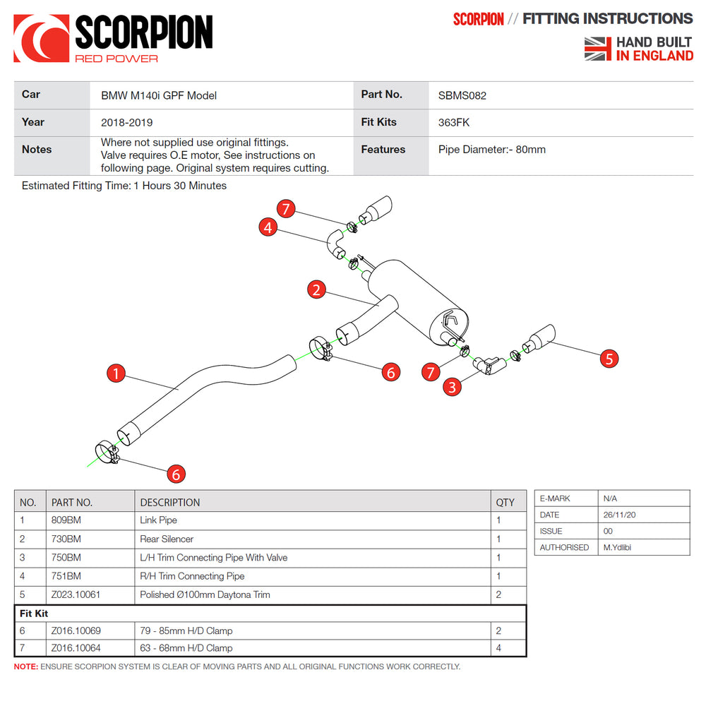 - SBMS082 - Scorpion Car Exhaust GPF-Back System (Non-Resonated) (Valved) Daytona - BMW M140i GPF Model 2018 - 2019, consisting of: