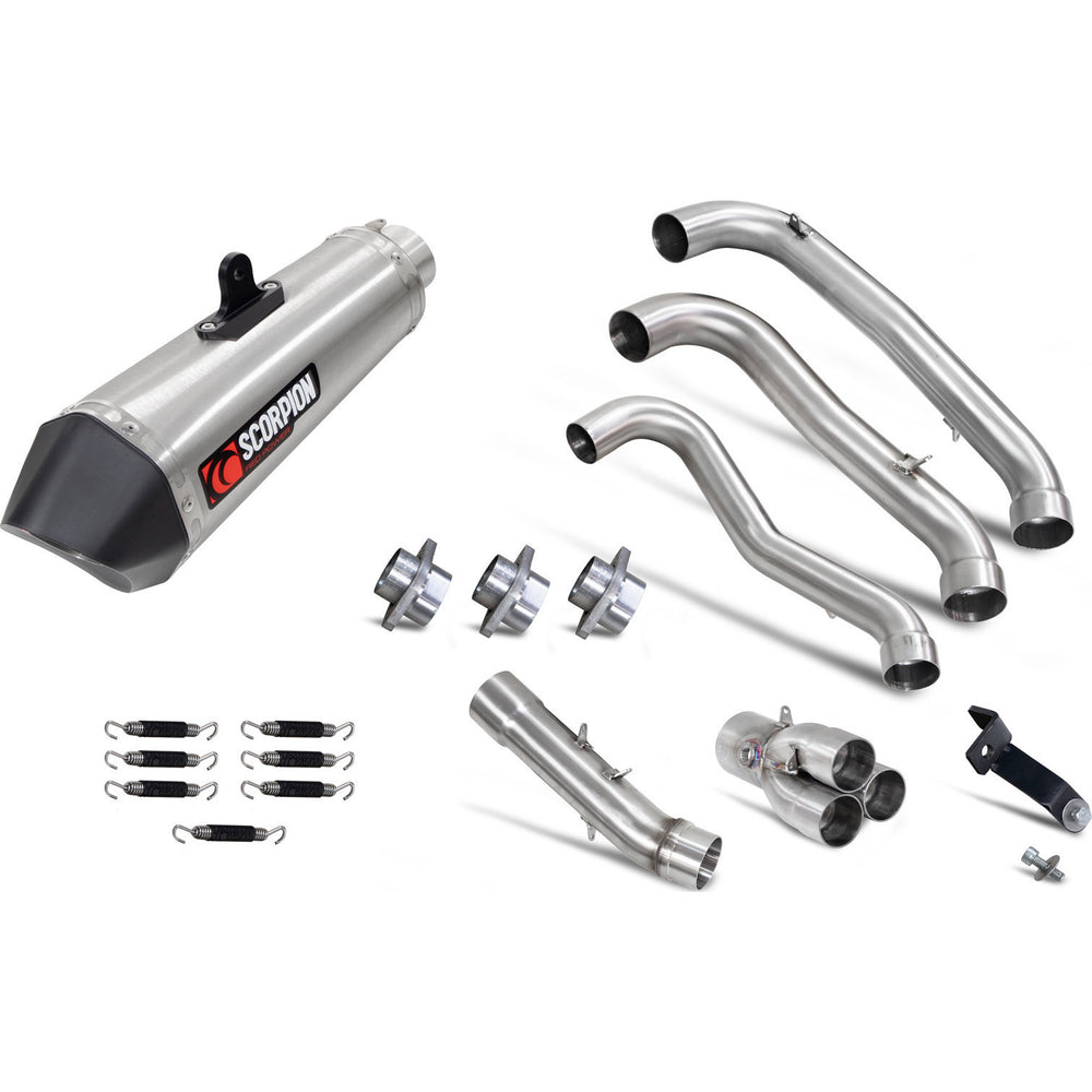 - RTR91SYSSEO - Scorpion Serket Taper Full System Stainless Exhaust - Triumph Trident 660 2021 - 2022, consisting of: