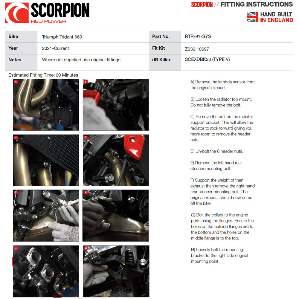 - Fittings/Instructions - All Scorpion products are supplied with everything needed to fit and ride, along with parts drawings and picture instructions where necessary