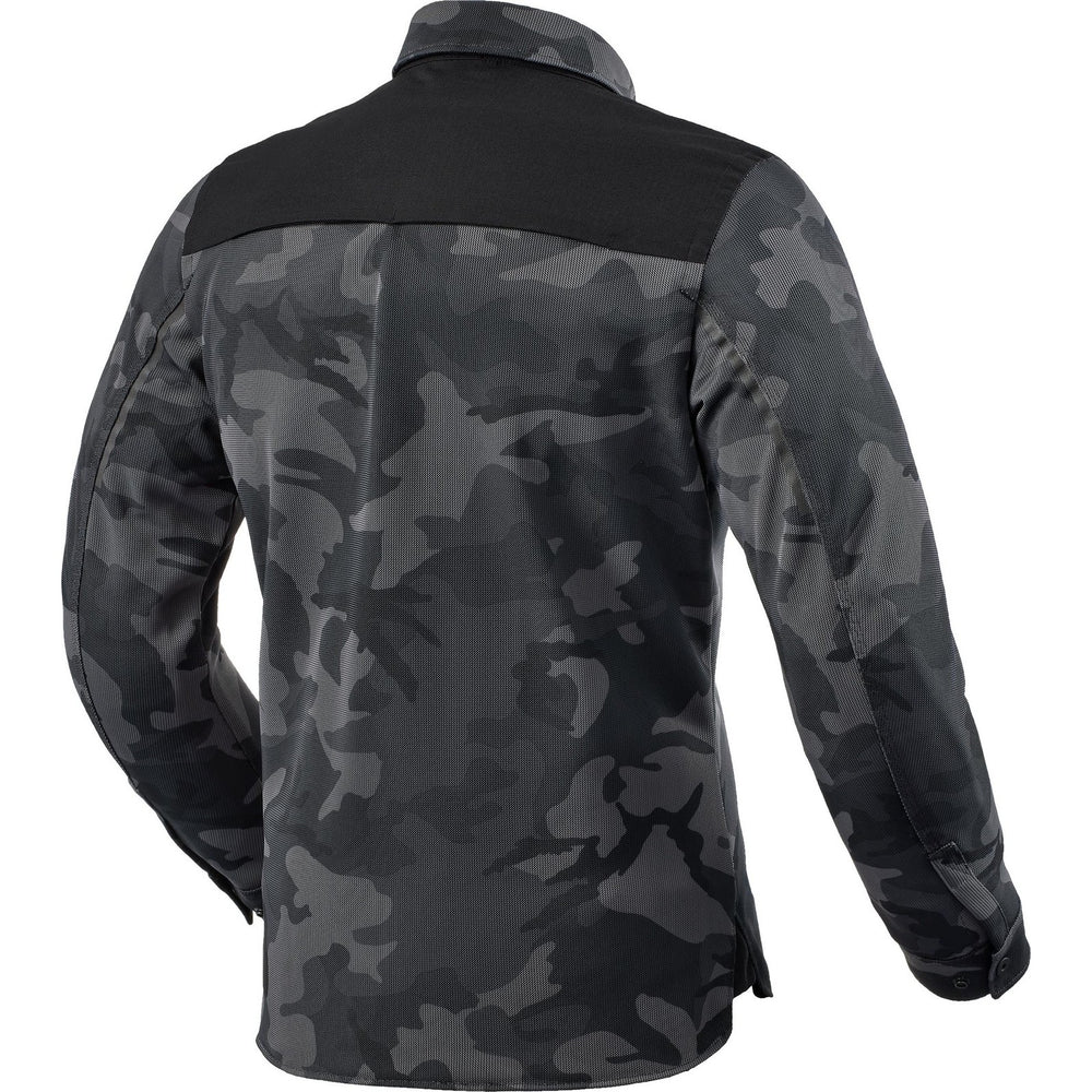 A ventilated overshirt for hot summer rides in the concrete jungle. The Tracer Air 2 combines all the functionality of a mesh jacket yet is engineered in the style of REV'IT!'s popular overshirts. A full mesh outer shell allows for optimal airflow, helping to cool the body down on those hot day/summer rides. Extensive development has led this overshirt to look like streetwear fashion material. But take a closer look and it reveals its open structure that allows air to reach the upper body. The Tracer Air 2 sports REV'IT!'s ultra-thin and flexible protectors at the shoulders and elbows, and this overshirt can easily be upgraded with a back protector insert. Offered in black, brown, and camo means the Tracer Air 2 facilitates the right style for everyone in need of that perfect summer product to throw on for a ride.